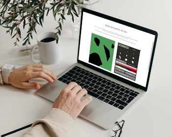 The colour of the chippings can be changed by using a colour picker or, for an exact shade, by entering a hex code. It’s also possible to alter the colour of the canvas itself. This represents the terrazzo binding which in the ‘real world’ would be cement or resin. The app also offers three pre-defined patterned backgrounds to provide inspiration.